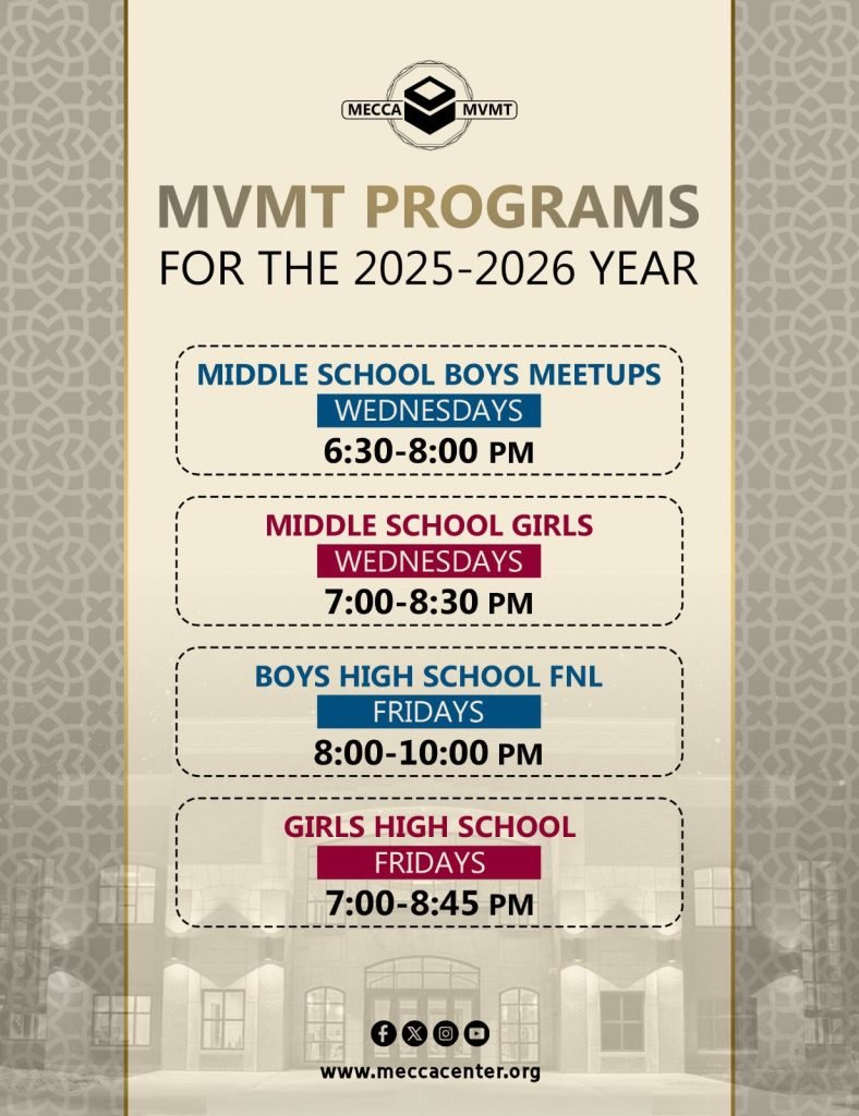 The purpose of the MVMT is to empower the youth to become knowledgeable, critical thinking and proactive Muslim members of society with long lasting effects on the community.